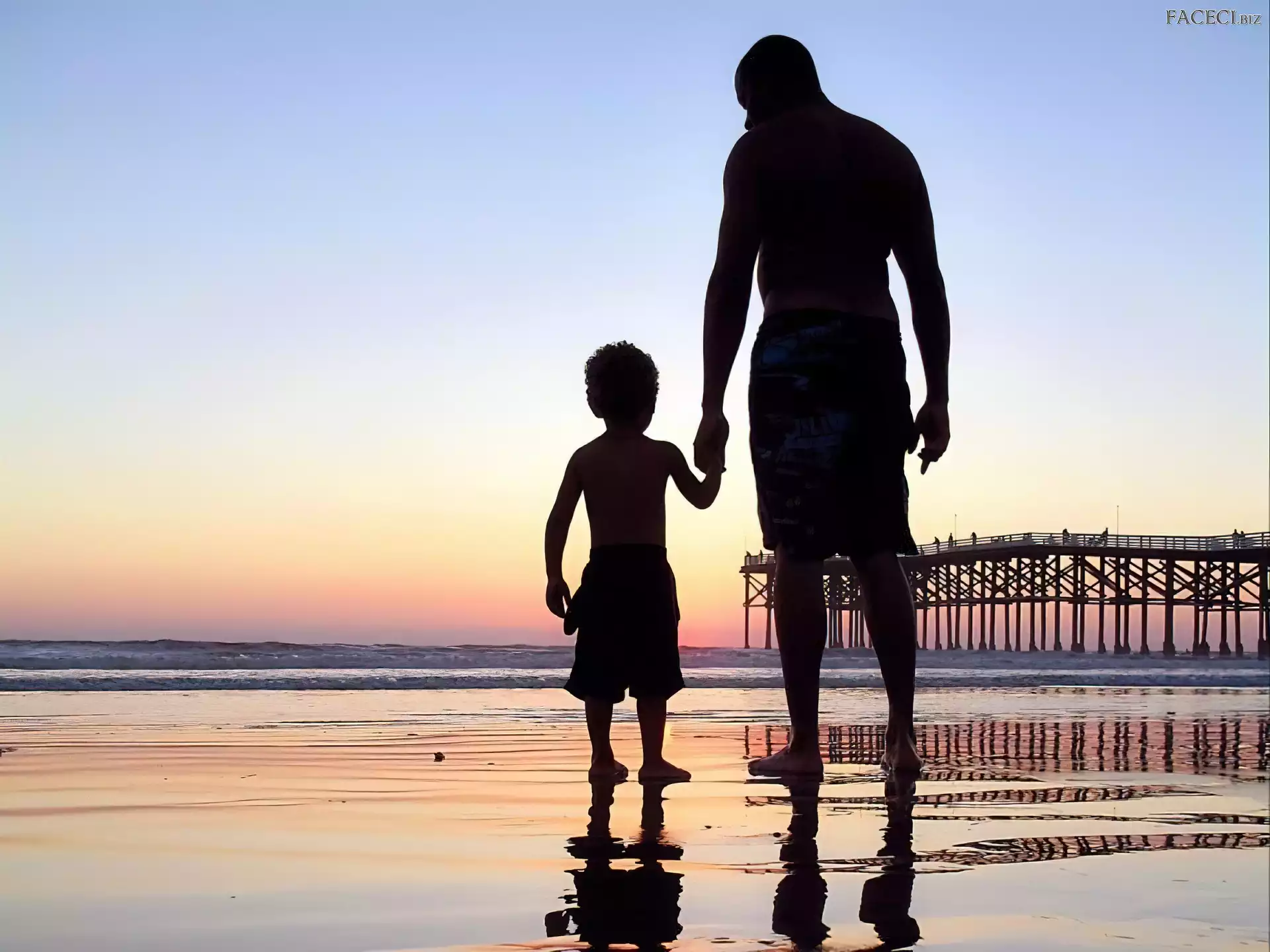 Ojciec, Zachód Słońca, Syn, Morze - faceci.biz